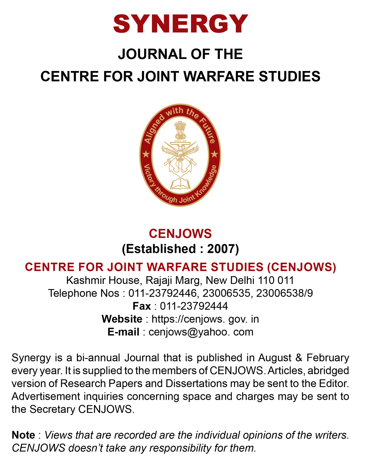 CENTRE FOR JOINT WARFARE STUDIES